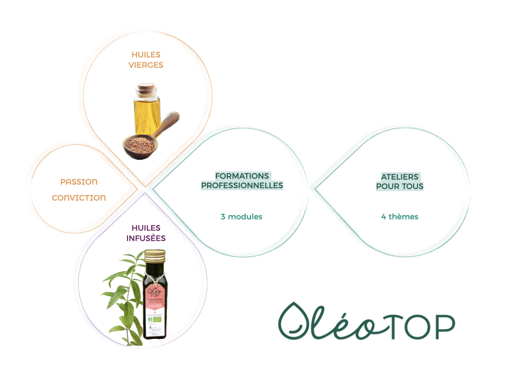 Les 3 modules d'une journée chacun proposés par Oléotop visent à répondre à l’ensemble de ces questions. Elles sont prises en charge par VIVEA et les OPCO ainsi que le CPF (si création d'entreprise). Ces formations alternent présentation orale, jeux interactifs et mises en situation pratiques. Elles peuvent être proposées en visio ou en présentiel. Il est possible de ne suivre que la partie théorique de chaque module (3x1/2 journée).